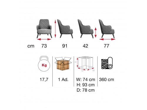 Gövde metal karkas ve gürgen ağacı, üzeri gri sünger, istenilen renk ve desenlerde üretilebilir, ayak cilası, kumaş ve suni deri rengi değiştirilebilir.